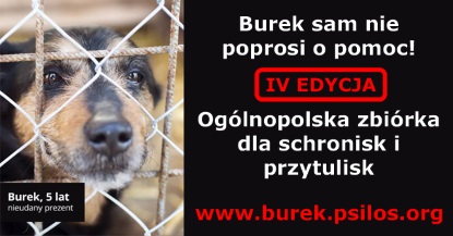 Interia oraz Fundacja Psi Los ogłasza rozpoczęcie czwartej edycji ogólnopolskiej zbiórki środków za które zakupiona zostanie karma dla psów i kotów „Burek sam nie poprosi o pomoc”. Zachęcamy do wzięcia udziału w akcji i wsparcia naszych psiaków. Poniższy baner zawiera link, który przekierowuje do naszego Azorka :)