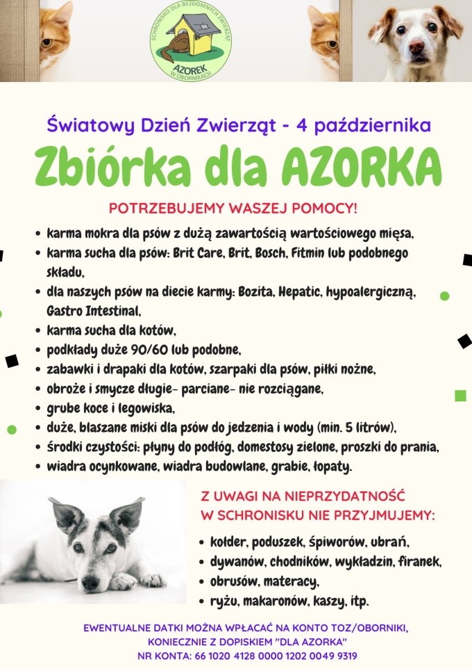 Potrzebujemy Waszej pomocy, ogłaszamy zbiórkę dla Azorka. Szczegóły na poniższej grafice.