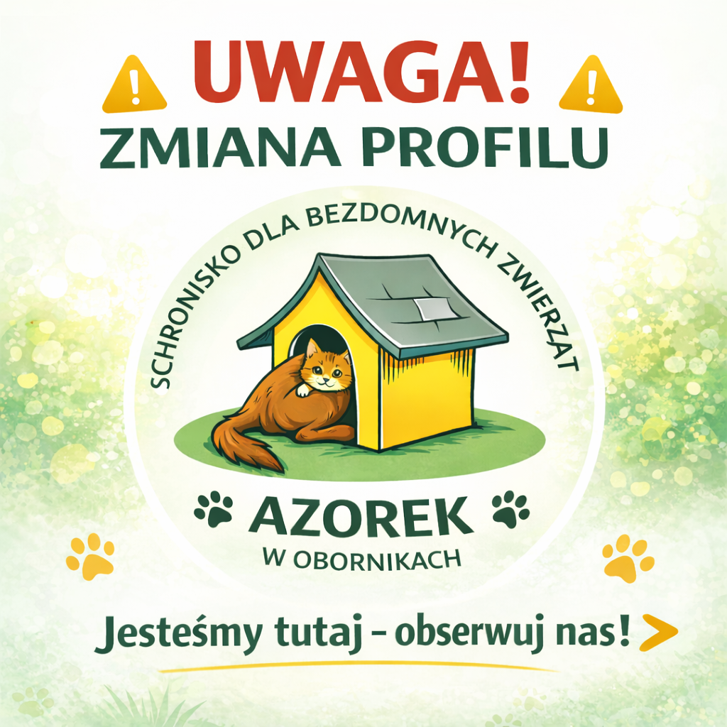 uprzejmie informujemy, że z dniem 27.03.2026 nastąpiła zmiana oficjalnego profilu Schroniska dla Bezdomnych Zwierząt „Azorek” w Obornikach na Facebooku. Z przyczyn od nas niezależnych straciliśmy dostęp do poprzedniego profilu.
