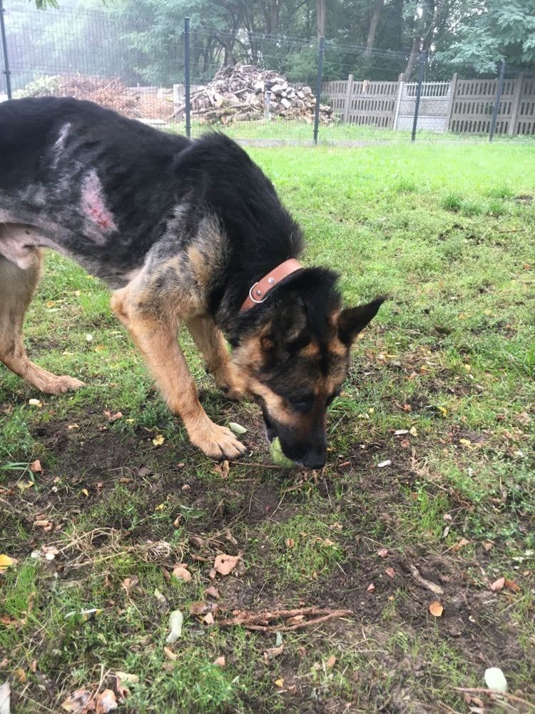 Pies przywieziony z Żernik, gmina Oborniki- 18 sierpnia 2021 r. Musiał brać udział w wypadku- tzn uderzył w niego samochód i zapewne odjechał - pies chodził kilka dni i w końcu wszedł na posesję skąd trafił do schroniska. Udało się nam go z weterynarzem uratować.... Wilson miał około 5 lat i jest pięknym, wiecznie głodnym owczarkiem.