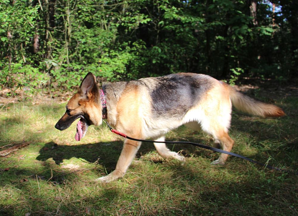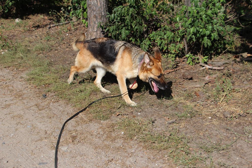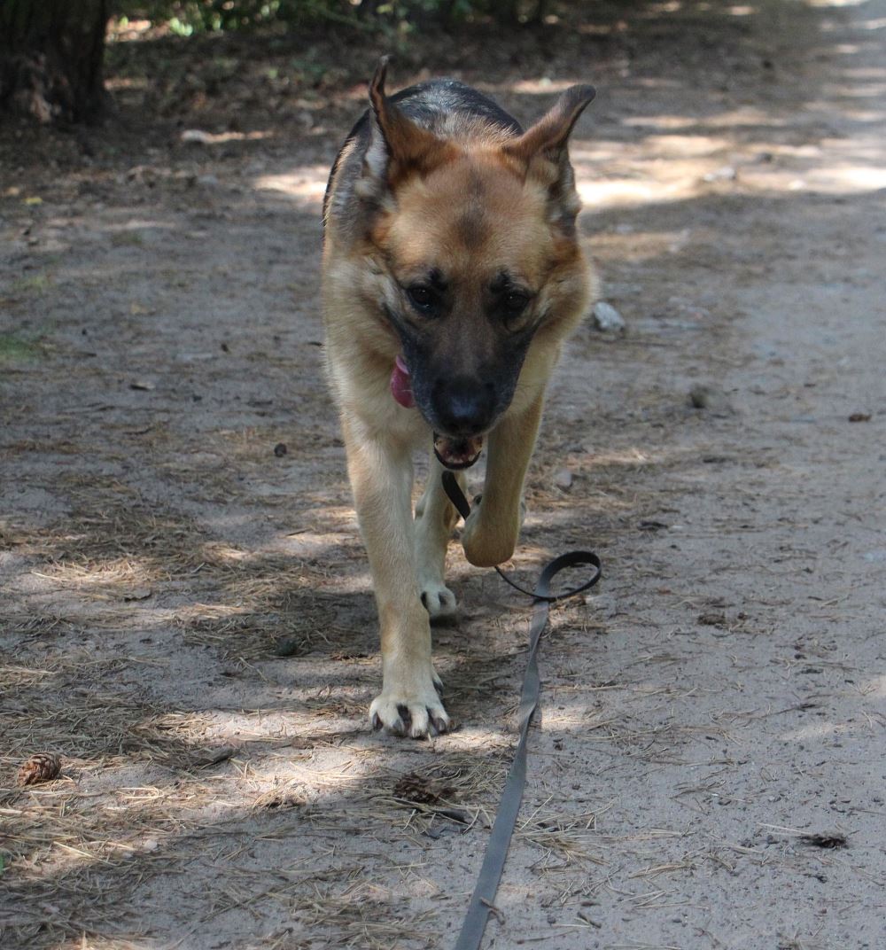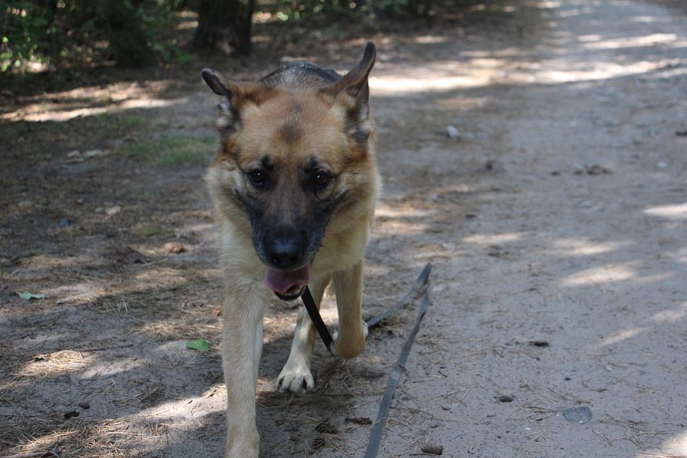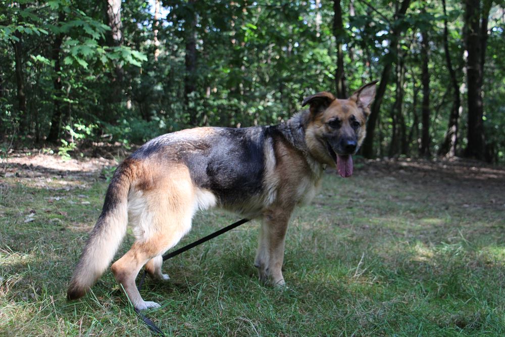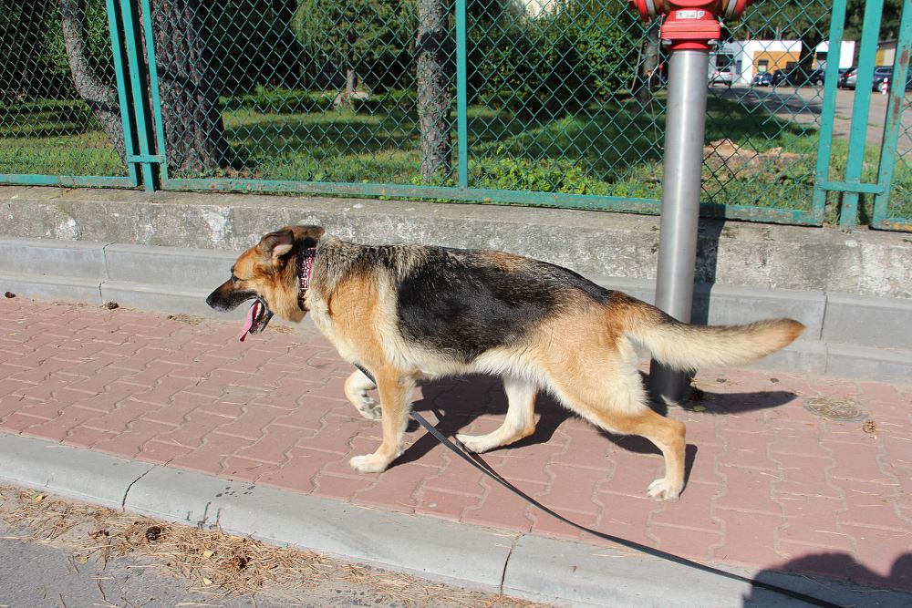 Suczka przywieziona do schroniska 3 września 2023 r. z Murowanej Gośliny. Atena ma pow. 5 lat. Jest łagodna wobec ludzi. Ładnie chodzi na smyczy. Jest dominująca względem psów, ale nie szuka zaczepki.