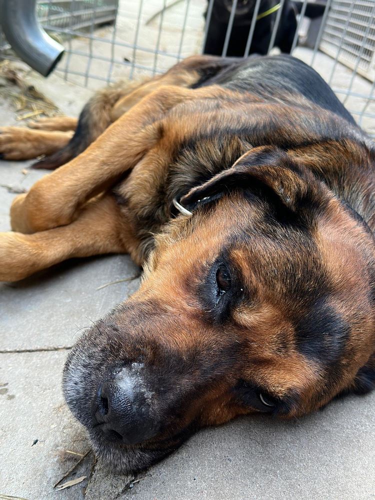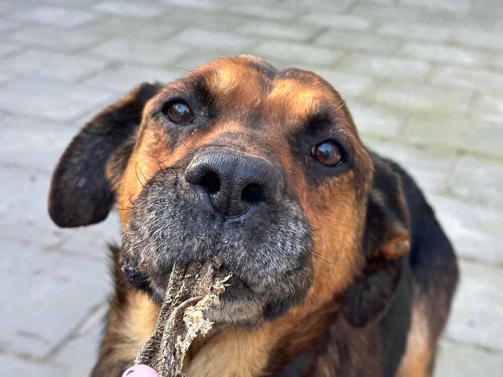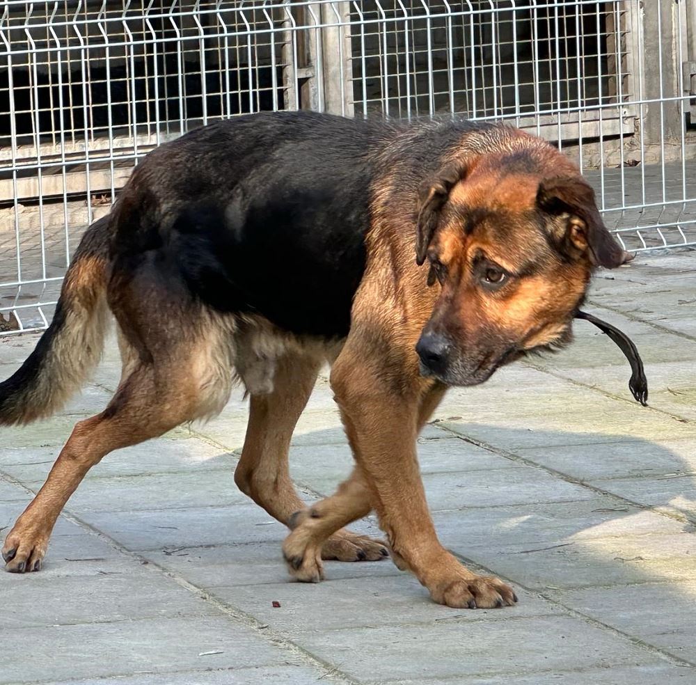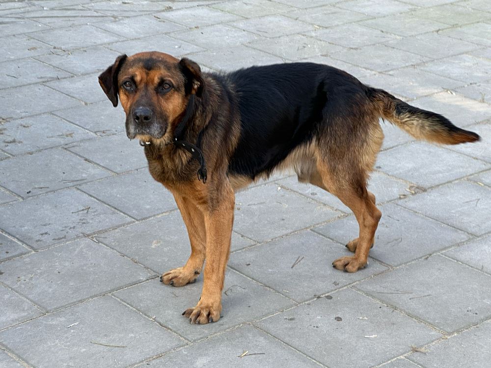 PYTON Pies przywieziony 29 stycznia 2025 r. z Owieczek, gmina Rogoźno. Pyton ma ok. 7 lat, waży 25 kg. Prawdopodobnie dotychczasowe życie spędził na podwórku. Nie potrafi chodzić na smyczy, boi się ludzi. Psiak ma stary uraz prawej łapy. Żył cały czas z bólem. Teraz dostaje lekki, które poprawiają komfort życia. Wkrótce zobaczymy co jeszcze możemy dla niego zrobić.
