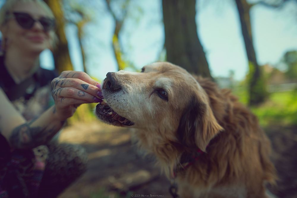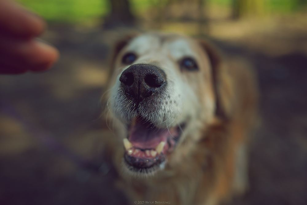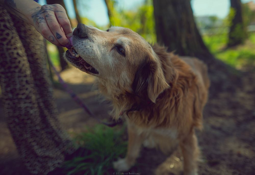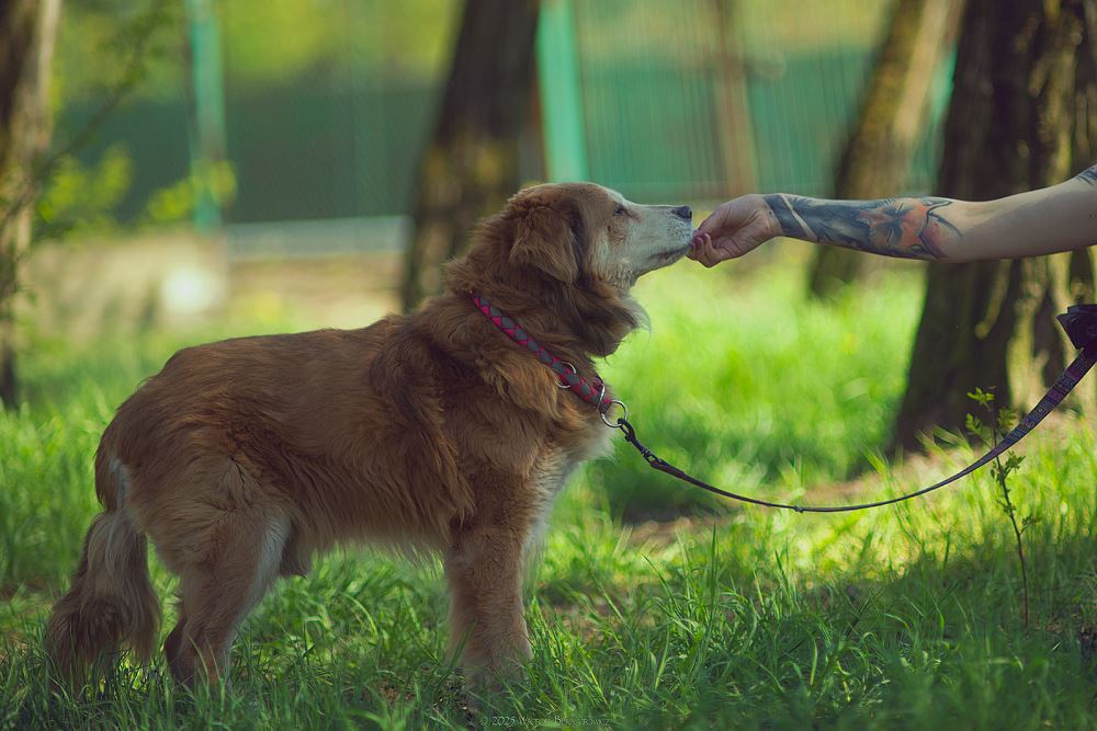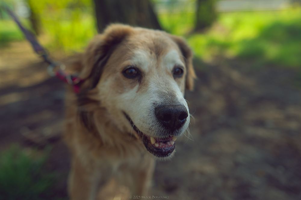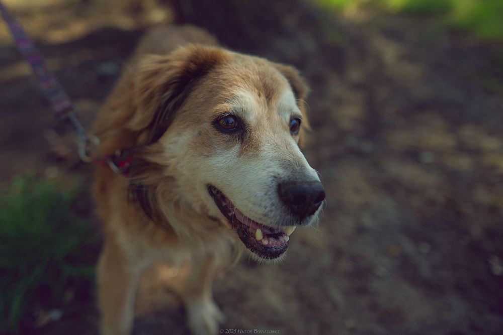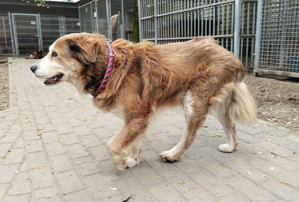 DINGO Starszy pies przywieziony 25 marca 2025 r. z Kościana. Dingo ma ponad 10 lat, waży 18 kg. Staruszek zgadza się z psami. Chętnie chodzi na spacery.