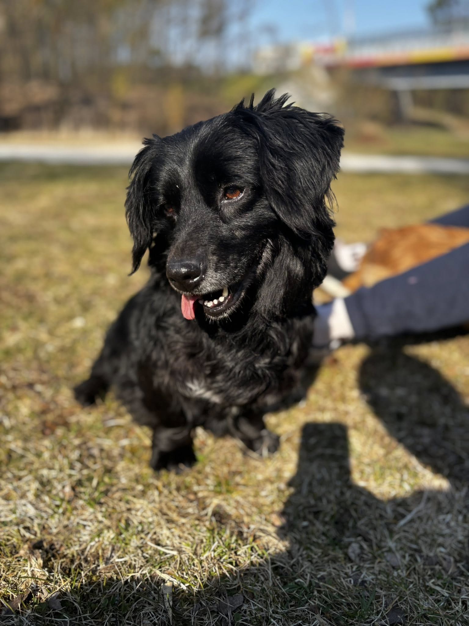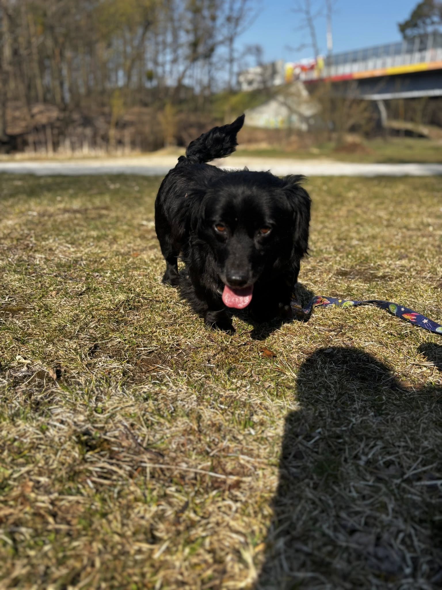 Hedwiga to średniej wielkości suczka, mieszaniec o czarnym umaszczeniu z białymi znaczeniami i średniej długości sierści.