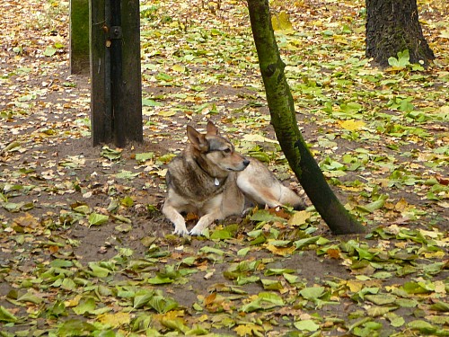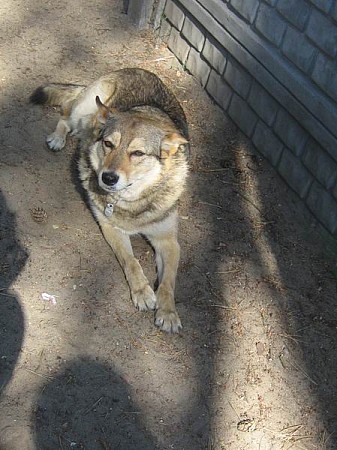 Leda jest suczką, która ma około 10 lat. W schronisku jest od 2002 roku.W schronisku została wysterylizowana. Jest bardzo łagodna i nie sprawia żadnych problemów. No, oprócz tego, że Ledunia przeskakuje płoty. Dlatego najlepiej byłoby, gdyby trafiła do mieszkania w bloku lub do domu otoczonym wysokim płotem. Jej wysokość w kłebie około 60 cm.####2007-11-04: Leda, pomimo tego, że bardzo ładnie wychodzi na zdjęciach, to strasznie nie lubi jak ktoś ją fotografuje,). Widząc aparat wstaje i odchodzi...trzeba czasami z ukrycia jej robić zdjecia:)####2008-03-12: Leda bardzo nie lubi byc fotografowana. Udało nam się jej zrobic zdjęcie wraz z małą od Srebnej,)