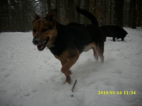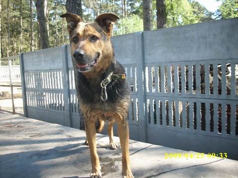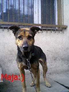 Maja jest wysterylizowaną, ma około 8 lat.W schronisku jest od 2004 roku. Wysokość w kłębie: 60 cm. Jest łagodna i przyjacielska. Jedyny jej problem polega na przeskakiwaniu płotów. Maja bardzo lubi biegać. Dobrze by się sprawdzała jako towarzyszka w bieganiu ,)=====================================================