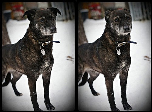 Srebrna to około 15 letnia suczka. Pochodzi od Wioletty Villas. Jest płochliwa, nieufna, ale niekonfliktowa. Srebrna jeszcze nie podchodzi do człowieka na tyle, żeby można ja było pogłaskać. Chowa się za budami i obserwuje nas z ukrycia. Jest nadzieja, ze kiedyś chęć przebywania z człowiekiem zwycięży z jej strachem. Czasami Srebrna podchodzi do wyciągniętej ręki, ale tylko wtedy kiedy widzi inne pieski, które są głaskane i że im nie dzieje się krzywda. Srebrna jest wysterylizowana. Srebrna jest pewnie siostrą Dory. Srebrna od kilku miesięcy (lipiec 2012 r.) przebywa z Dorą na wybiegu z przodu schroniska - dzięki temu jest już dużo bardziej otwarta do ludzi, sama podbiega daje się głaskać i nie chowa się do budy jak podchodzimy do niej - to wielki sukces!!! 23 września Srebrna wyszła na swój pierwszy spacer na smyczy!!!! Oczywiście towarzyszyła jej Dora. Srebrną i Dorą opiekuje się Wolontariuszka Magda 604 586 838
