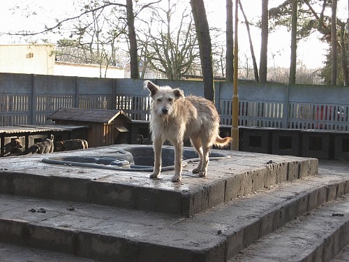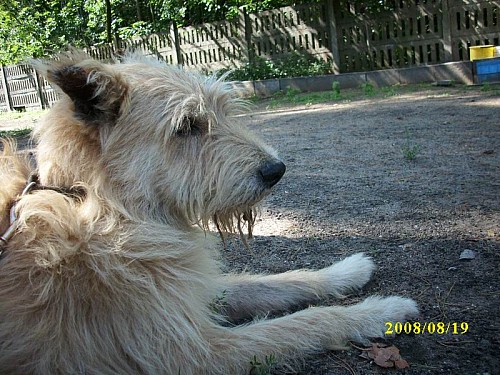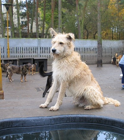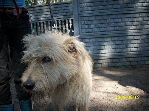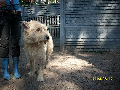 Jest to juz staruszek. Ma bardzo łagodny charakter, lubi dzieci. Trafił do naszego schroniska po śmierci swojego właściciela, a jego nowy opiekun nie zapewnił mu solidnej opieki i z tego powodu często błąkał się po mieście. Nasz Kazik jest już w swoim rodzinnym domu. Nieodpowiedzialny własciciel odebrał go po zapłaceniu mandatu:).