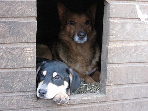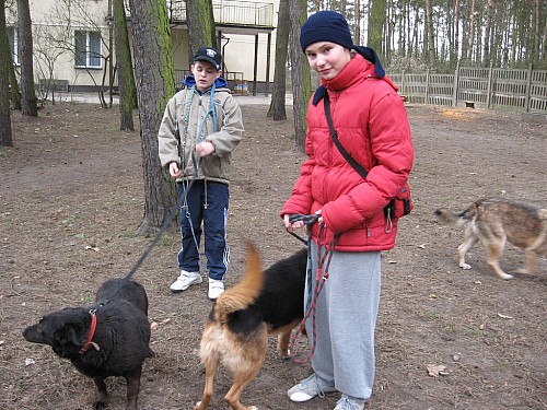 Aris jest za Tęczowym Mostem.####2008-01-01: Aris jest troche bojaźliwy wobec innych psów, woli często im ustępować. ####Na zdjęciu ze szczeniakiem od Rolki,)####2008-02-25: W dniu 23 lutego 2008 r. do Arisa przyjechały dzieci - jego wirtualni opiekunowie z klasy 6 C. Dzieci zabrały Arisa na spacer:)