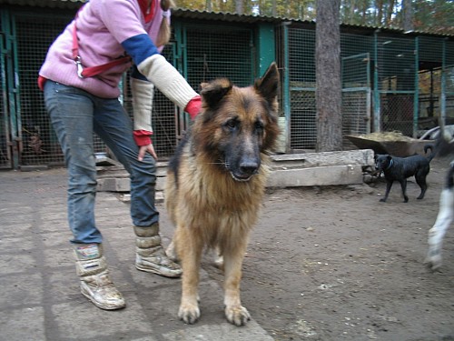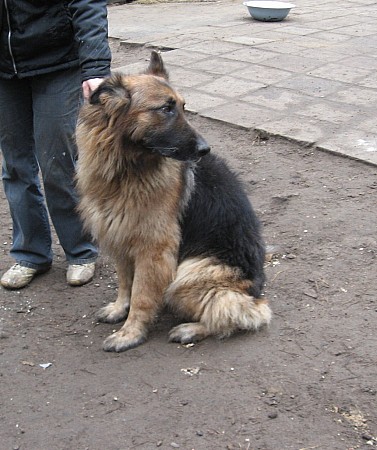 jest to owczarek niemiecki, długowłosy. Ma około 3-4 lat. Jest zaniedbany, jego sierśc wymaga pielegnacji. Jest toche zaczepny do innych psów. Dla ludzi jest łagodny. Reaguje na komende "siad". Lubi biegać za kijem. W uchu ma tatuaż.