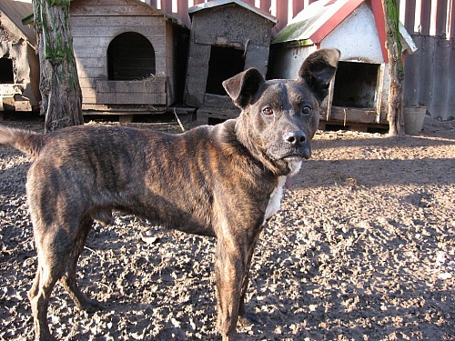 Jest to około 4 letni pies. Jest konfliktowy w stosunku do innych psów, dlatego w schronisku musi byc na łańcuchu, czego nie pochwalamy, ale dla tego pieska jest to jedyne wyjście.