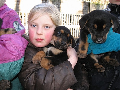 Są to szczeniaczki, które zostały przerzucone przez płot schroniska. Maja około 6 tygodzni. Sa zaszczepione przeciwko chorobom zakaźnym. Są 3 psieski i 2 suczki.