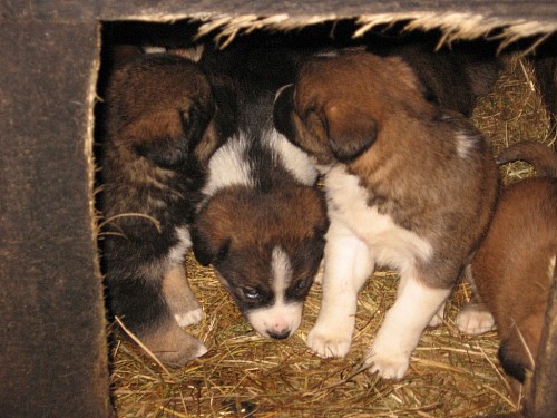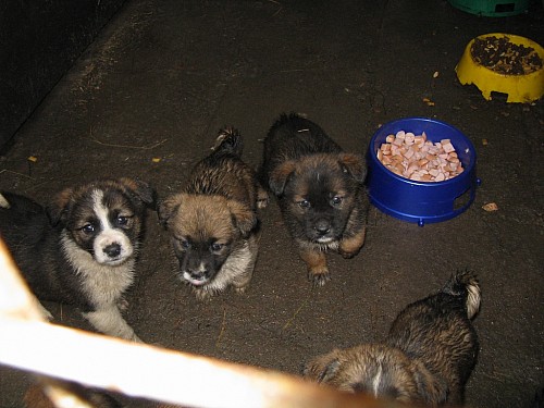 Mamy nadzieje, że maluchy szybko znajda dom.####2008-01-21: Ze wszystkich szczeniąt została tylko jedna suczka - ruda z czarnym pyszczkiem - widoczna na głównym zdjęciu w prawym dolnym rogu.: Niestety, ta sunieczka odeszła za TM.