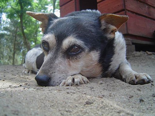 Są to trzy suczki. Pinia to już staruszka, Czarka to około 1,5 roczna suczka a Psotka (ta po prawej stronie zdjecia) też ma około 1,5 roku. . Suczki zostały odebrane przez inspektora TOZ i straż miejską, podczas 8 dniowej nieobecności właściciela. Wszystkie suczki zostały wysterylizowane. U Pini stwierdzono nowotwór macicy, mamy nadzieję, że wszystko bedzie dobrze :)Suczki są w schronisku od marca 2008.Czarka ma przewlekłą chorobę oczu.