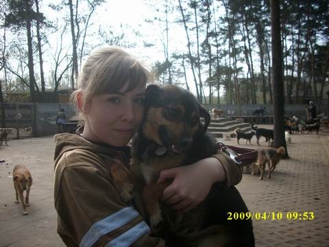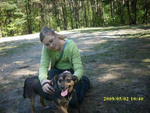 Kaja znalazła nowy dom.####2009-04-11: Kaja z wolontariuszką Moniką####2009-06-22: Kaja z Moniką na wystawie psów nierasowych w Murowanej Goślinie####2009-06-25: Kaja z Moniką####2009-08-28: Kajka na spacerze w lesie.Sunia lubi zabawy z innymi pieskami i drapanie po brzuszku ,) Na zdjęciu z opiekunką Moniką ,]####2010-01-01: Kaja i Lida na spacerze (,