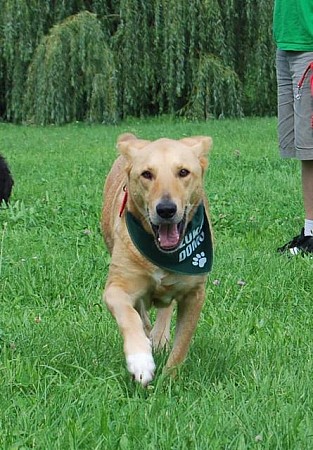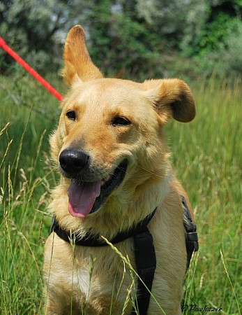 Jest bardzo spokojna, łagodna i opanowana. Na spacerze chodzi przy nodze i jest bardzo posłuszna.