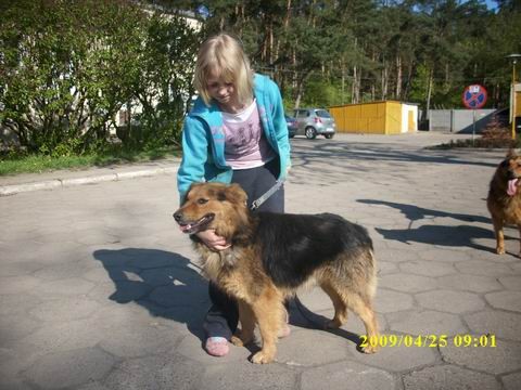 Alat to około 1,5 roczny mieszniec owczarka niemieckiego. Jest spokojny, dogaduje sie z innymi pieskami..Jest średniej wielkości. Uwielbia chodzić z dziećmi do lasu i nad rzekę. Nadawał by się do mieszkania w bloku ale musiało by to być dość duże mieszkanie, ale najlepiej czułby się na podwórzu, najlepiej gdyby był jedynym pupilkiem lub z suczką, ponieważ bywa on zazdrosny w stosunku do innych psów, ale za to kocha ludzi i dzieci. Alan jest to młody piesek do ułożenia. Alan bardzo tęskni za domkiem, gdy gdzieś siadamy (w lesie, np na piasku) to od razu się pcha na kolana. Nasz Alanek czeka na dom...==================================================