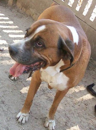 Jest to mieszaniec boksera i staforda...Jest masywny. Ma około 3 lat. Z innymi psami się zgadza. Maks mieszka w domu z ogrodem.####2008-09-23: Maks uwielbia się bawić piłkami.