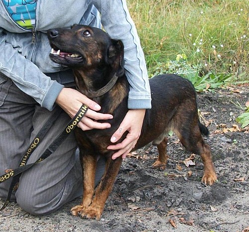 Cziko to około 5-letni pies. Trafił do schroniska w 2008 roku bardzo pogryziony i chudy. Był leczony i miał się coraz lepiej. Cziko jest już zdrów jak ryba. Figlarny z niego psiak, chętny do polizania i zabawy z każdym człowiekiem.