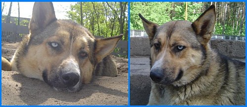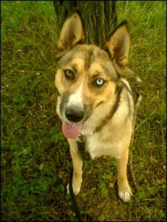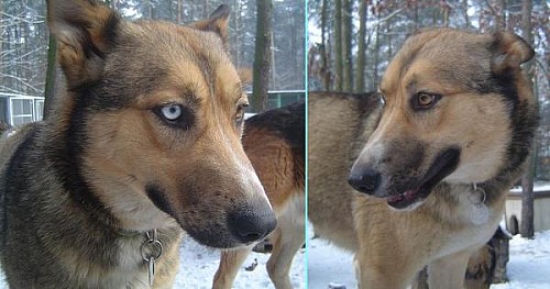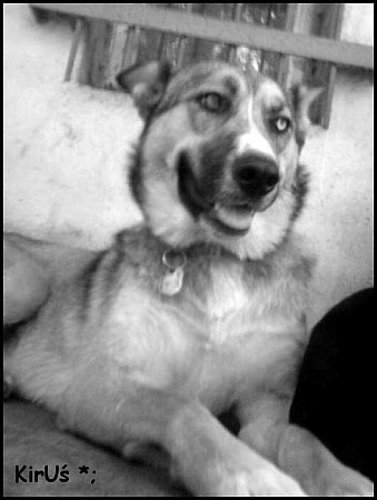 Ma niesamowicie piękne jedno "rybie" oko a drugie brązowe..Lubi spacery w lesie i zabawy z psami a szczególnie z Karem.