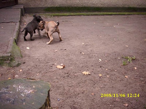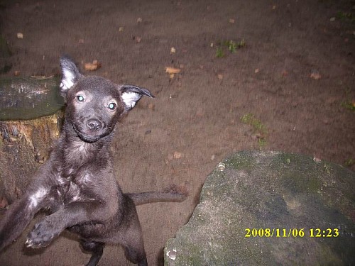 Maleńka sunia ma około 6 tygodni.Trochę się boi ludzi i unika z nimi kontaktu wzrokowego. Zabrana na ręce nie wyrywa się,jest spokoja.Suczka mieszka w nowym domu.####2008-11-06: Nasza maleńka nie jest już płochliwa.####2008-11-06: Zabawa szczeniaków.