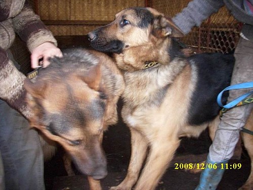 Te dwa psy rasy owczarek niemiecki w wieku około 1.5 roku.Do schroniska przyjechały z gminy Murowana Goślina w grudniu 2008.Zanim je złapano zagryzły sarnę.Winę za to zajście ponosi właściciel psów.Psy zostały zabrane przez właściciela po wizycie jego w Straży Miejskiej i uiszczeniu kary pieniężnej.