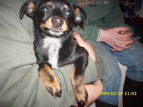 Pchełka to szczeniak suczka w wieku 4 miesięcy.Jest malutka i drobniutka.Ma krótszy ogonek.Jest bardzo zabawna i ruchliwa.Suczka została adoptowana.