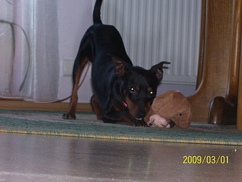 Piesek został adoptowany do Swarzędza i nazywa się Dyzio.####2009-04-24: Dyzio w nowym domu####2009-04-24: Tola i Dyzio####2009-06-22: Dyzio na wystawie psów nierasowych w Murowanej Goślinie####2009-06-22: Dyzio z Tolą na wystawie psów nierasowych w Murowanej Goślinie