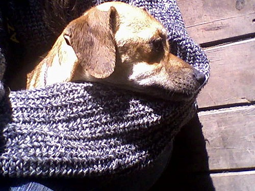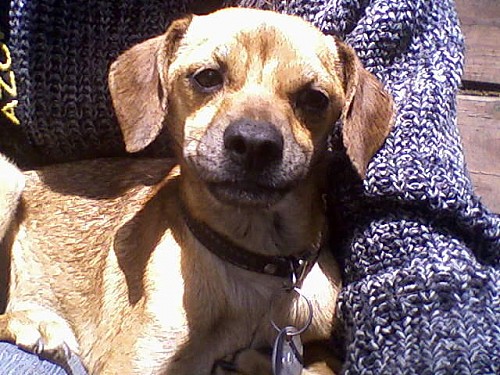 Jest to suczka w wieku około 1 roku.W schronisku od maja 2009.Trafiła do schroniska z kilkunaoma psami z tego samego domu. Początkowo bardzo się bała nie wychodziła z boksu, nie zbliżała się do ludzi. Opieka i troska wolontariuszy sprawiła, że suczka stała się bardziej pewna siebie. Sama wskakuje na kolana i chce być cały czas blisko ludzi, wtedy odgania wszystkie inne psiaki by być w centrum uwagi.