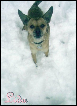 Lida znalazła nowy dom.####2010-01-01: Kaja i Lida na spacerze (,####2010-02-12: Lida podczas spaceru ze swoją wolontariuszką Moniką ,).####2010-03-11: Lida