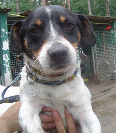 Jest to około roczny piesek :) .. Jest spokojny, ładny i niekonfliktowny. Ma czarno-białe-brązowe umaszczenie. Bardzo lubi być noszony na rękach ,) Kropuś bardzo ładnie chodzi na smyczy ..Jest malutki i kochanym pieskiem ,) ,) ... Czeka na nowy domek :) Ma krzywe przednie łapki.==========================