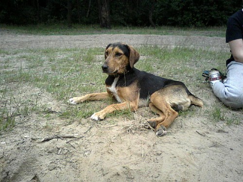 Oskar to około 3=letni pies.Został wyrzucony w okolicy stacji benzynowej.Leżał przez wiele dni przy dystrybutorze.Jest on niekonliktowym , ale przeskakuje 2-metrowe płoty schroniska.Ma krótki ogon.Oskar mieszka w nowym domu.####2009-07-17: Anita Oskar Psotka####2009-07-17: Oskar na spacerze nad rzeką