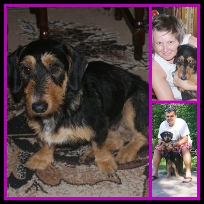 Aza to około 2-3 letnia suczka mieszaniec jamnika szorstkowłosego.
