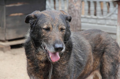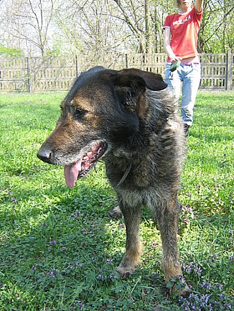 Tobi to starszy pies ok. 11-12 letni, jest szorstkowłosy, rudy z czarnym nalotem. Jest dużym, ale bardzo spokojnym psem. Potrafi walczyć o swoje wśród innych psów.