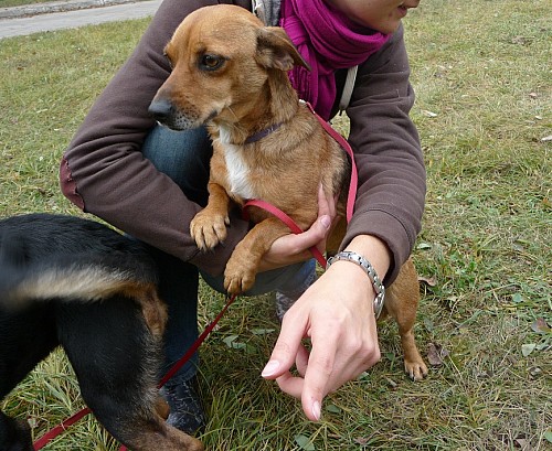 ####2009-11-09: Żabka.####Ma ok. 2-3 lat.####Jest bardzo płochliwa.####Czasem daje się złapać.####Wolontariuszki pracują nad nią.####2009-12-27: Żabka to około 3 letnia suczka mieszanka jamnika. Została odebrana właścicielce, która miała na swojej posesji około 16 psów. Jest ona nieufna i płochliwa. Nie daje się dotknąć człowiekowi. Wolontariusze pracują nad nią. Żabka to prześliczny piesek. Miejmy nadzieję, że szybko się oswoi i znajdzie nowy szczęśliwy domek.########Żabka zrobiła już duże postępy ,)####zaczyna znów ufać ludziom ,)####2011-10-24: Żabka jest coraz śmielsza w kontaktach z ludźmi####2011-10-24: Pilnie potrzebny domek dla Żabki - zima tuż tuż####2011-10-30: Jak widać Żabka sama pcha się na kolana####2011-10-30: Jeszcze trochę i Żabka będzie mogła brać udział w pokazach:-)####2011-11-11: Żabka pozdrawia znad morza (11.11.2011)####2011-11-14: A teraz cała seria zdjęć Żabki znad morza####2011-11-15: Adoptując jednego psa nie zmienisz całego świata, ale zmieni się cały świat tego psa.####2012-04-12: Pierwsza Wielkanoc Żabki w nowym domku####0000-01-05: Zdrowych i pogodnych Świąt Bożego Narodzenia życzy Żabka z rodzinką