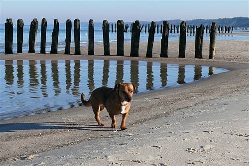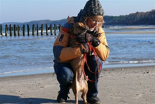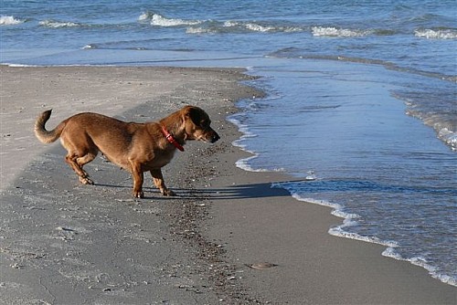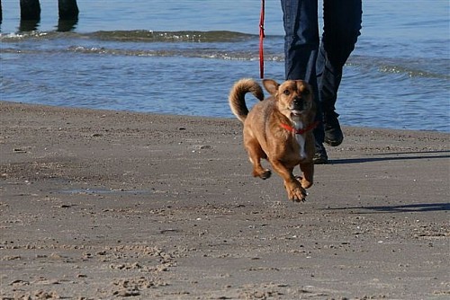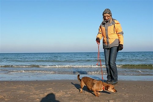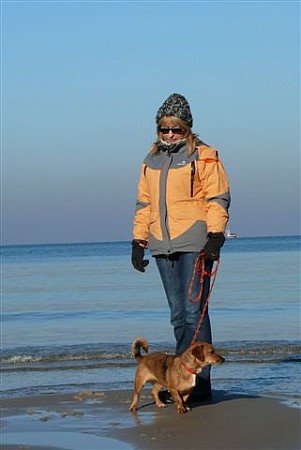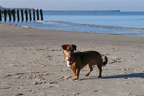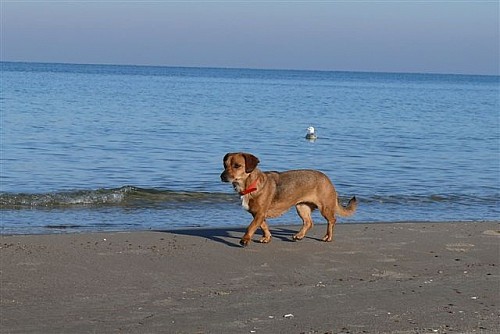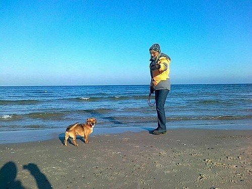 Na plaży biegała swobodnie, bez smyczy, pilnowała nas by się nie zgubić, robiliśmy długie spacery, potem leżała w koszyku i odpoczywała. Apetyt jej dopisuje. Żabka okazała się strasznym pieszczochem. Nam też to się podoba.