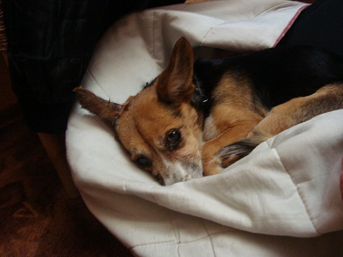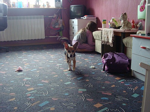 U Anetki suczka czuje się dobrze i powoli dochodzi do zdrowia.Jest nauczona czystości.