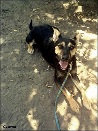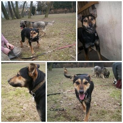 Czarna to około 4 letnia wysterylizowana suczka, do schroniska trafiła z bratem Rudolfem, który znalazł już dom. Czarna ma wielkie serce do osób, które już dobrze pozna, do obcych podchodzi z dystansem. Lubi się bawić z innymi psami, aportować patyki i chodzić na spacery, na których może się wybiegać i wyszaleć. Lubi także pieszczoty i drapanie po brzuchu. Nie jest duża, trochę szorstkowłosa. Jest trochę podobna do owczarka, ale jest mniejsza i drobniejsza. Czarna na swój nowy domek czeka już ponad 3 lata. Czarna wymagać będzie pracy ze strony swojej nowej Rodziny - jest kochaną psinką, ale niestety bardzo zalęknioną - niestety jest mocno przeganiana na wybiegu. Czarna już coraz częściej wychodzi na spacerki na smyczy - siedzi w budzie blisko furtki i wręcz upomina się aby ją zabrać na spacer.