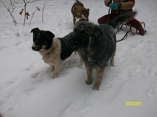 ####2010-01-10: Psie zaprzęgi, nasze psiaki uwielbiają ciągnąć sanki, sprawia to im wielką przyjemność. Od lewej Keli(1r.) Bambi(2l.) Klusia(1,5l.) Ted (2,5l.) i zboku Sindi(1r.)####2010-01-10: Keli i Bambi Bardzo lubią ciągnąć sanki, sprawia im to wielką przyjemność. Są pełne energii i wigoru:) ####2010-01-10: Keli i Sindi Zabawa w śniegu. ####2010-02-14: Keli w zimie####2011-02-19: Kluska i Keli