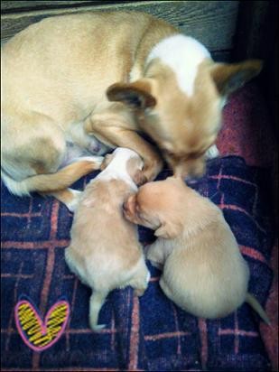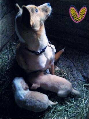 Po mordkach maluchów możliwe że ich ojcem jest cocker spaniel lub rasa spokrewniona ze spanielem.Maluchy nie mieszkają już w schronisku.