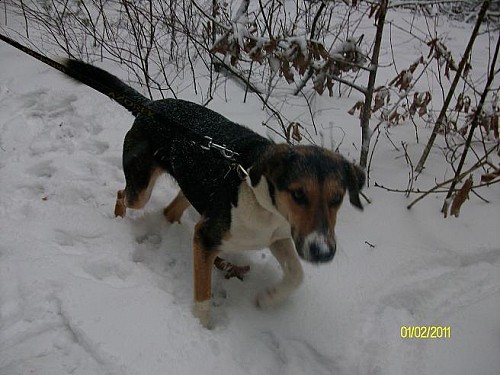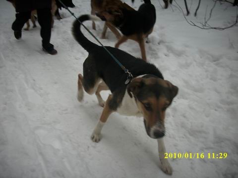Wakacje minęły nam na kilkukilometrowych eskapadach, zazwyczaj nad owińskie jeziora lub nad Wartę. Troszkę trenowaliśmy biegi na Dziewiczej Górze. Potem nadeszła jesień i zaczęliśmy biegać przy rowerze. Bardzo podoba mi się jej skupienie podczas biegu. Ostatnio nawet sarny nie były specjalnie atrakcyjne, byle do przodu...! Regularnie poprawia swoje czasy na danym odcinku. Jest super! Od listopada jeździmy na treningi do naszego klubu. Troszkę źle się czuje uwiązana pośród psów, kiedy czeka na swoją kolej do startu, staram się tworzyć tą sytuację jak najbardziej komfortową dla niej (zazwyczaj jest na uwięzi połowę czasu, który normalnie spedzają inne psy, resztę czasu biega luzem lub spędzamy go na zabawach w przeciąganie i na pływaniu). Mam nadzieje, że do tego przywyknie.