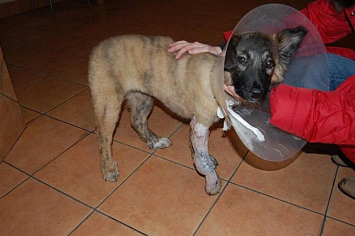 Ma na imię Madera.####2010-01-16: Łapka i Kazek####2010-01-21: Łapka w domu u wolontariuszki Marzeny####2010-01-28: Łapka w Klinice w Poznaniu przy ul.Naramowickiej 68####2010-02-14: tak wyglądała nóżka Łapki przed operacją####2010-02-14: Łapka w Klinice w Poznaniu przy ul.Naramowickiej 68####2011-05-18: Łapka-Madera: Nasza Łapka została adoptowana przez Panią Doktor Karolinę z Klinikii,w której była operowana.