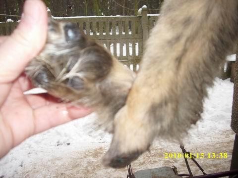ok 3 miesięczna sunia. kochana i wierna. na razie jeszcze troche spłoszona. suczka ma otwarte,stare złamanie prawej przedniej łapki.Suczka została zoperowana przez dr Jacka Gołańczyka w Poznaniu przy ul.Naramowickiej 68.Mimo swojego cierpienia jest bardzo pogodnym szczeniakiem. Prawdopodobnie bd duża. Przed operacją ,mimo jej rany, sunia była żywiołowa i uwielbiała zabawy w śniegu. :).