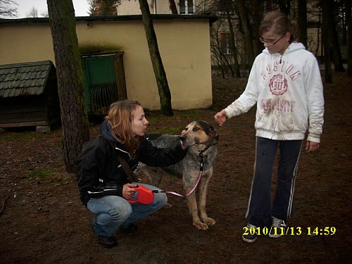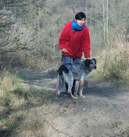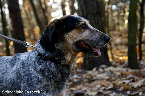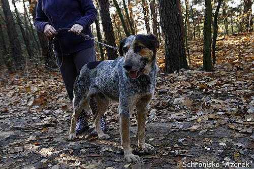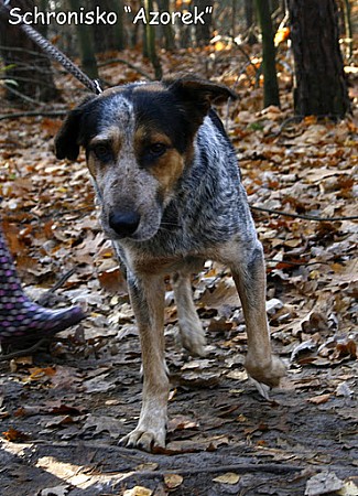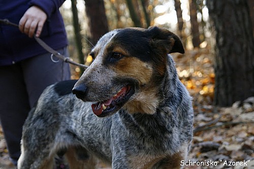 Zenek to duży ok. 4-letni pies, ślicznie umaszczony, w typie Australian Cattle Dog (Australijski Pies Pasterski) –, rasa ta charakteryzuje się tym, że psy kochają swoich właścicieli, są wiernymi towarzyszami na długie lata. Psy te nie uciekają, nie włóczą się, nie są hałaśliwe, a chętnie dotrzymują towarzystwa ludziom i są karne. Zenek jest bardzo inteligentnym psem, pomimo tego, że inne psy w schronisku się na niego uwzięły i wiele czasu spędza schowany w budzie to jak tylko usłyszy wolontariuszki wskakuje na dach budy –, tak mocno chce być zauważony, chce, żeby zabrać go z tego miejsca. Na spacerze Zenek idzie przy wolontariuszkach, nie ma potrzeby wyrywania się, nie szuka sposobu do ucieczki, często przystaje i obraca się –, sprawdza czy idziemy za nim. Zenka nie interesuje nic innego jeżeli człowiek jest w pobliżu i bardzo mocno przeżywa każde rozstanie –, długo pod naszym odejściu siedzi przy bramie i wypatruje naszego powrotu –, dopiero zaczepki innych psów powodują, że zrezygnowany idzie do budy:-( Wybierając Zenka zyskasz przyjaciela na całe życie, dla którego będziesz najważniejszą osobą na świecie!