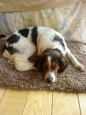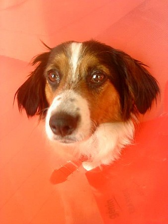 ####2012-01-08: Żora wyrosła na śliczną suczkę####2012-01-08: A tak się prezentowała w kołnierzu po zabiegu na oko