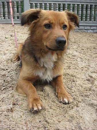 Kajtuś-jest to około roczny pies. Jest przyjacielski dla ludzi i innych psów, umie chodzić na smyczy i uwielbia byc blisko człowieka. Na spacerach jest wszystkiego ciekawy i lubi się bawić z innymi psami. Czasami lubi sobie poszczekać na inne psy. Uwielbia pieszczoty-sam często chcąc zwrócić na siebie uwagę i być głaskany skacze ,aby tylko go zauważyć. Czeka na dom. Odda człowiekowi całe swoje ogromne serduszko.===============================