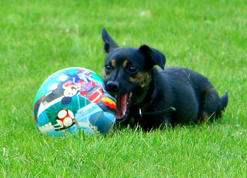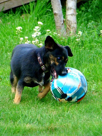 ####2012-04-21: Odi w nowym domku####2012-04-21: Odi podczas zabawy...####2012-04-21: ...z ulubioną piłeczką:-)####2012-04-21: Odi szczęśliwa psinka