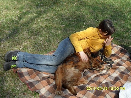 Koko mieszka w nowym domu.####2011-05-18: Koko z ukochaną Julią