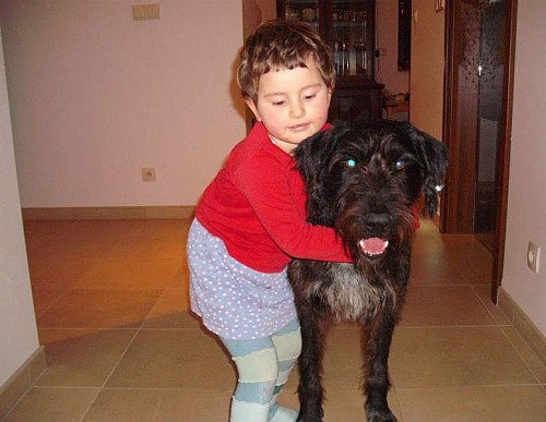 Z Lagusem wszystko w porządku. Biega po naszych łąkach i goni zające, czasem nam ucieka na spacerze, ale szybko wraca. Byliśmy z nim dwa razy w Antoninku na wybiegu, ale w większej grupie psów nie czuje się dobrze. Bardzo lubi jeździć samochodem. Chętnie wskakuje do bagażnika i nie chce stamtąd wysiadać. Z kotem już się tolerują, chociaż i Lagus i kotka są zazdrosne o nasze względy. Gdy kotka przychodzi do nas na kanapę, Lagus przyłazi też i nadstawia swój wielki łeb do głaskania. Zżyliśmy się już z nim i cieszymy się, że z nami jest.