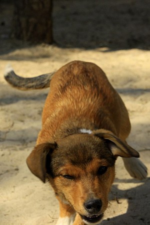 Piesek ma 4-miesiące.Do schroniska trafił z 3 rodzeństwa.
